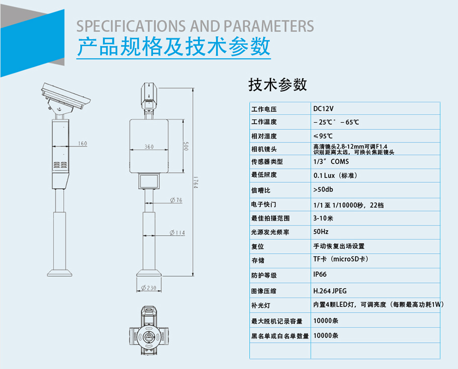 3、優(yōu)異的成像自動(dòng)控制:自動(dòng)跟蹤光線變化,有效抑制順光和逆光;夜間抑制汽車大燈
