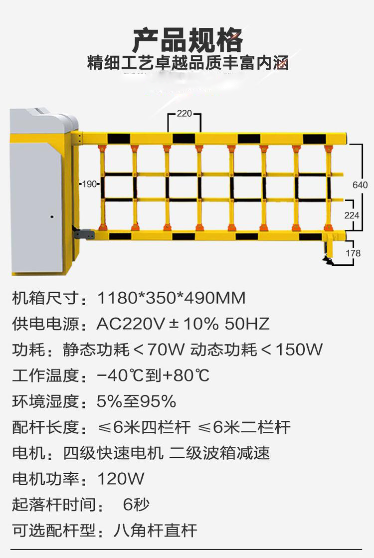 仁為升級款空降道閘,高速穩(wěn)定,承重更強,柵欄更長,升降更穩(wěn)。采用鋁合金加厚靜音機箱,噪音低,散熱快;四級快速電機,比普通電機更高效;高品質(zhì)進口元器件,主板穩(wěn)定性更好;靜電粉塵高溫烤漆工藝,不褪色。